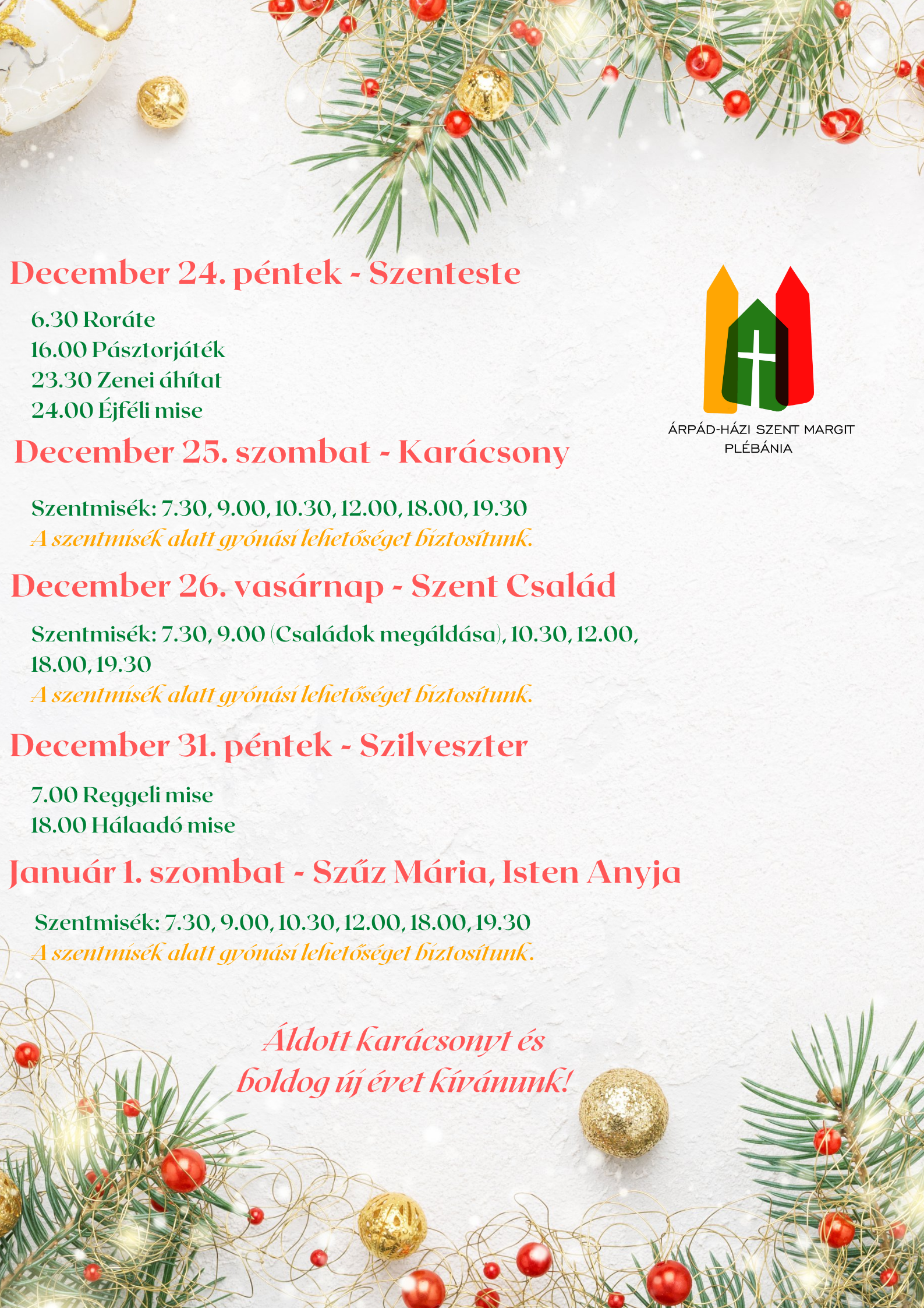 Karácsonyi és újévi szentmisék
