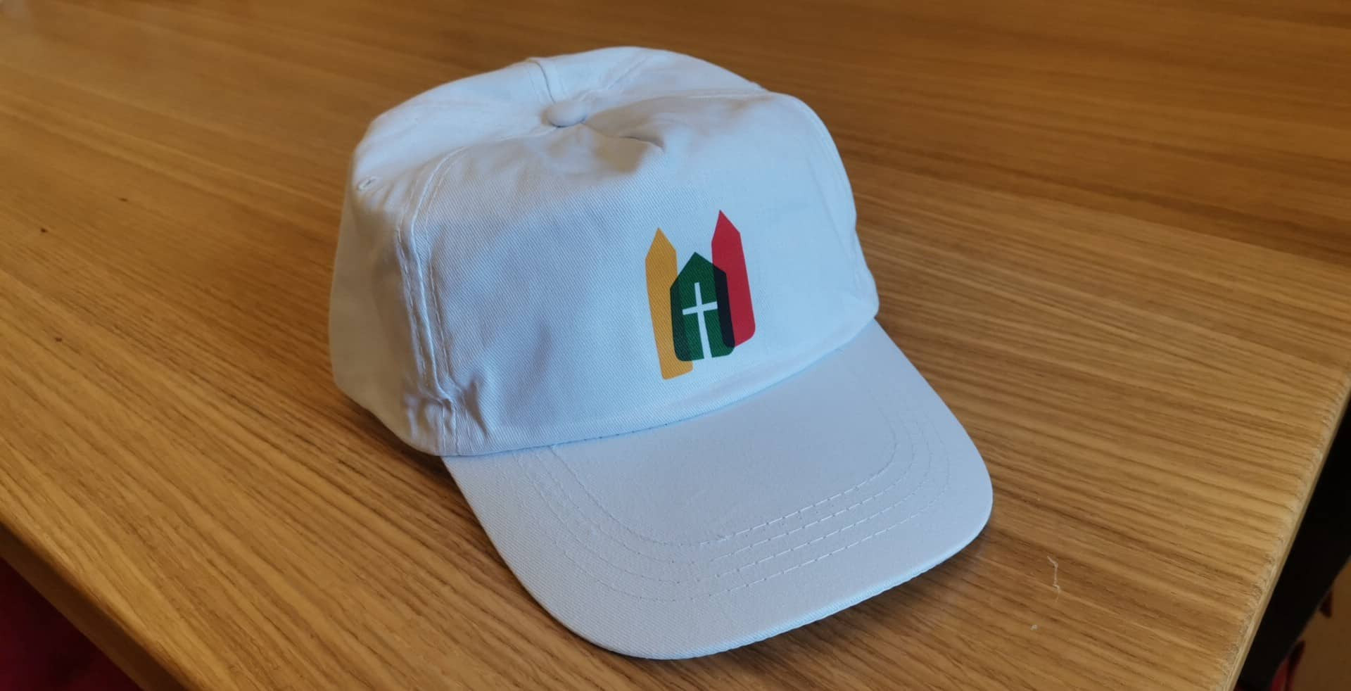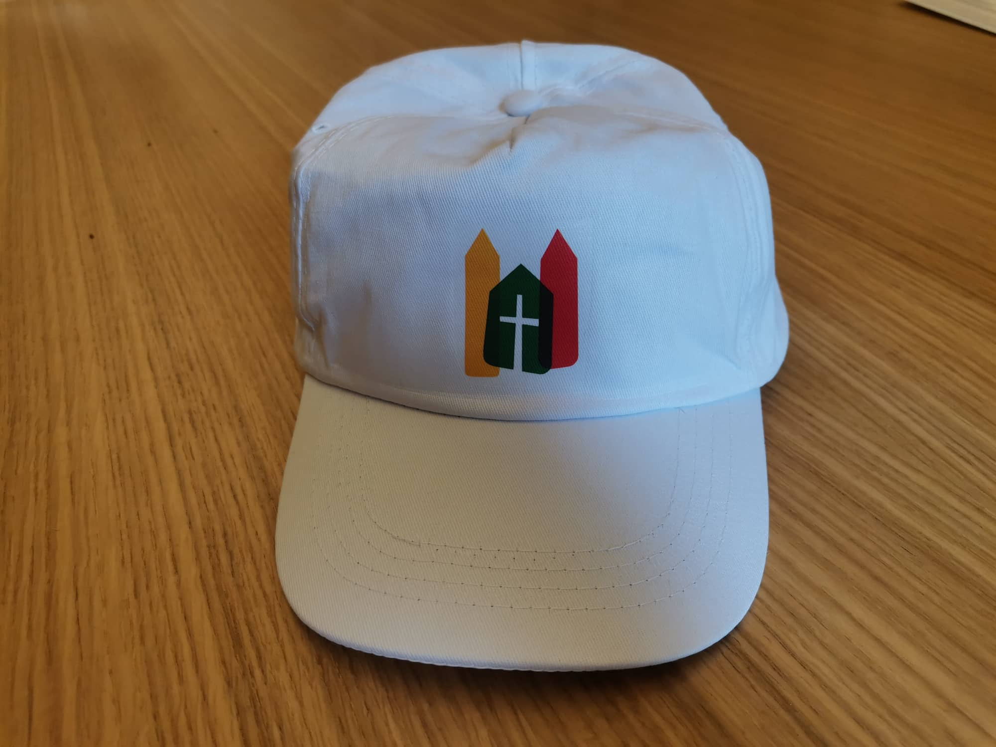 Az új, szemellenzővel is ellátott, templomunk logójával díszített fehér fényvisszaverő nyári sapkák az előtéri információs ponton kaphatók.