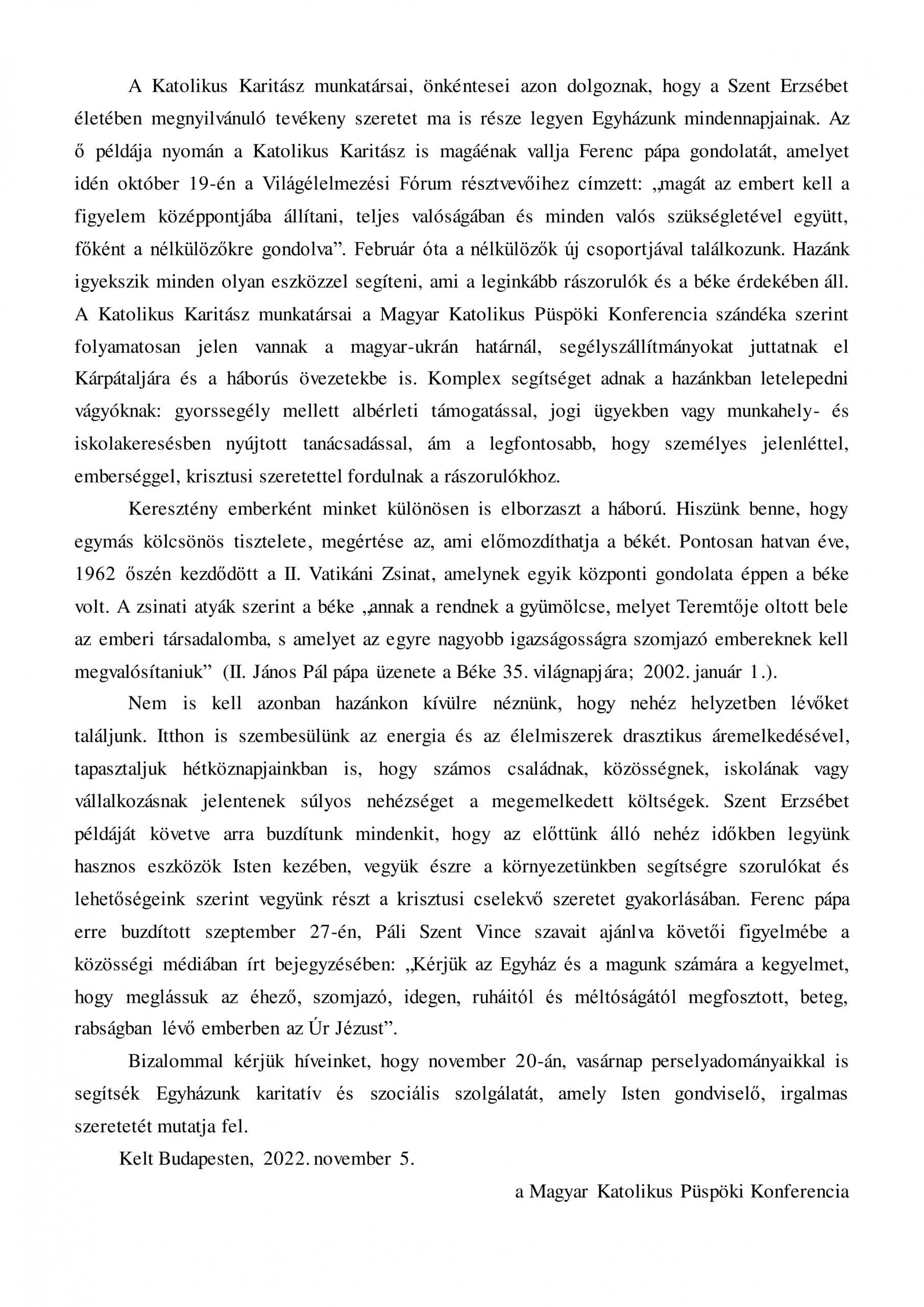 „Kérjük az Egyház és a magunk számára a kegyelmet, hogy meglássuk az éhező, szomjazó, idegen, ruháitól és méltóságától megfosztott, beteg, rabságban lévő emberben az Úr Jézust”.
