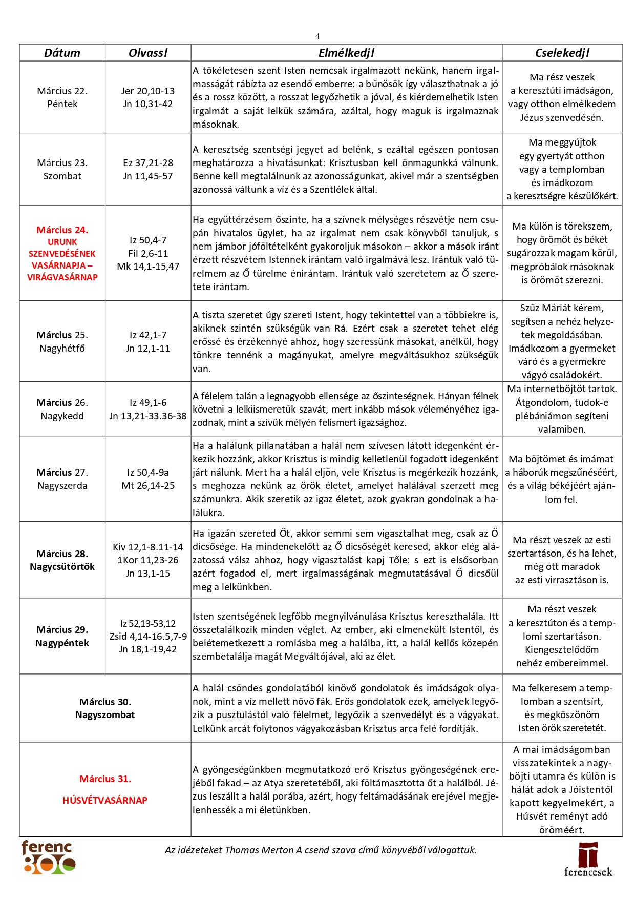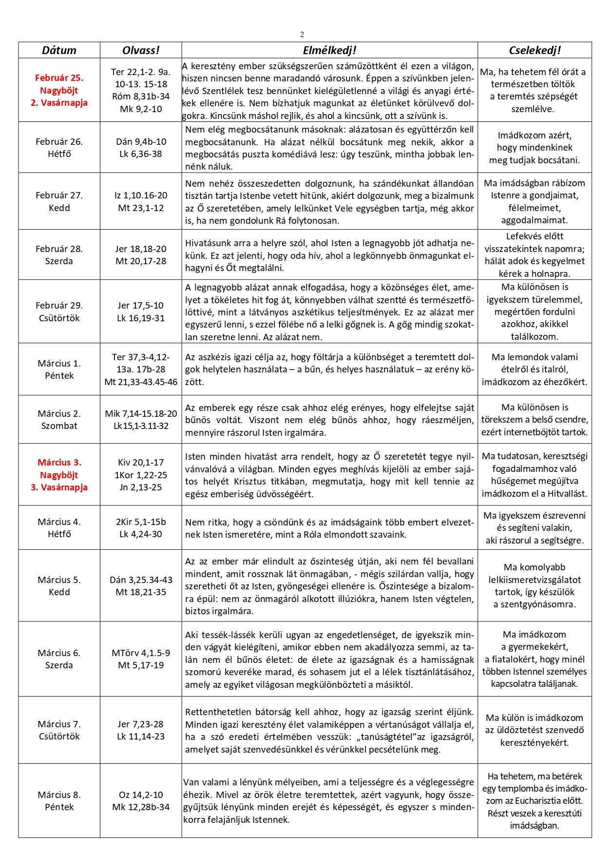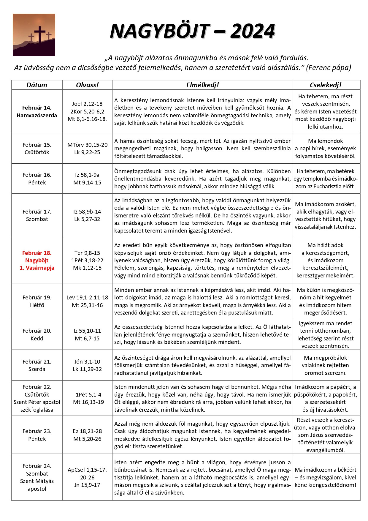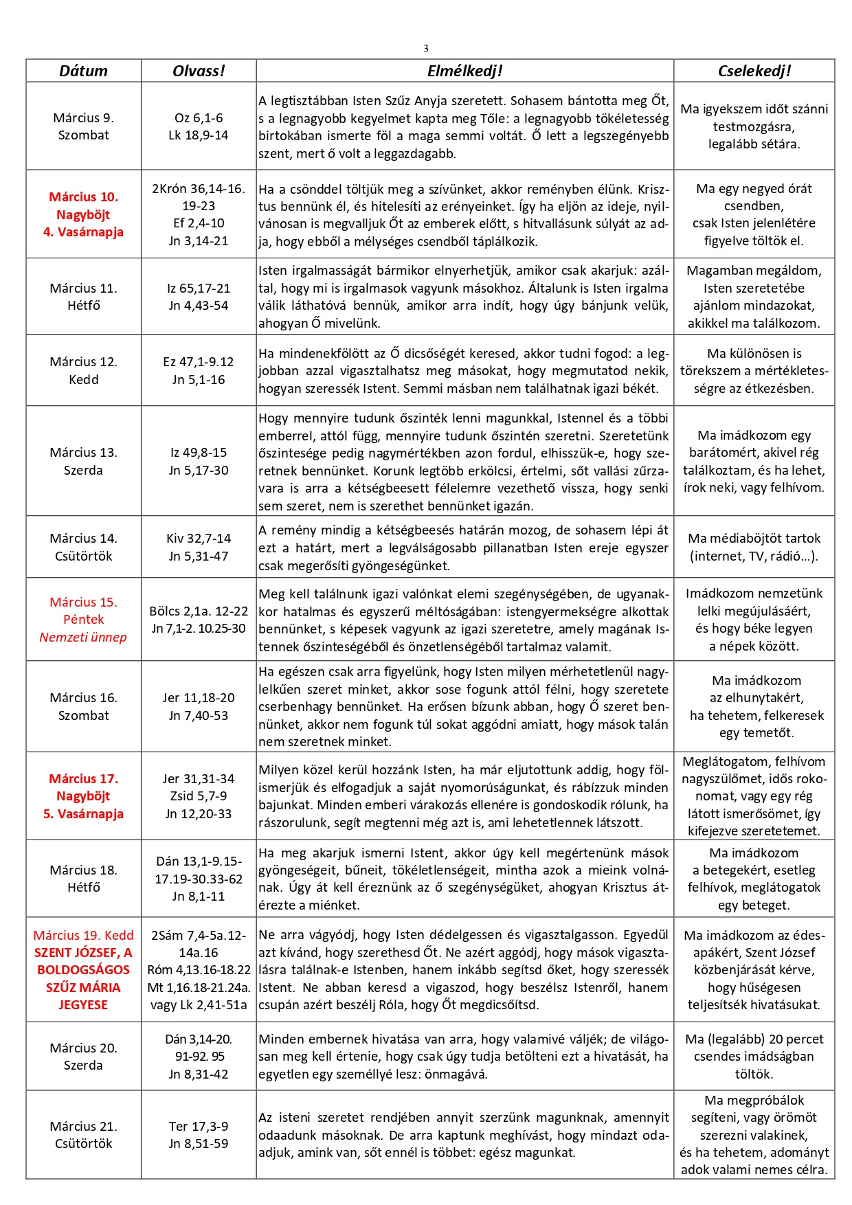 Minden nap elmélyülhetünk az imádságban, jót cselekedhetünk. Igyekezzünk embertársainkra még jobban odafigyelni.