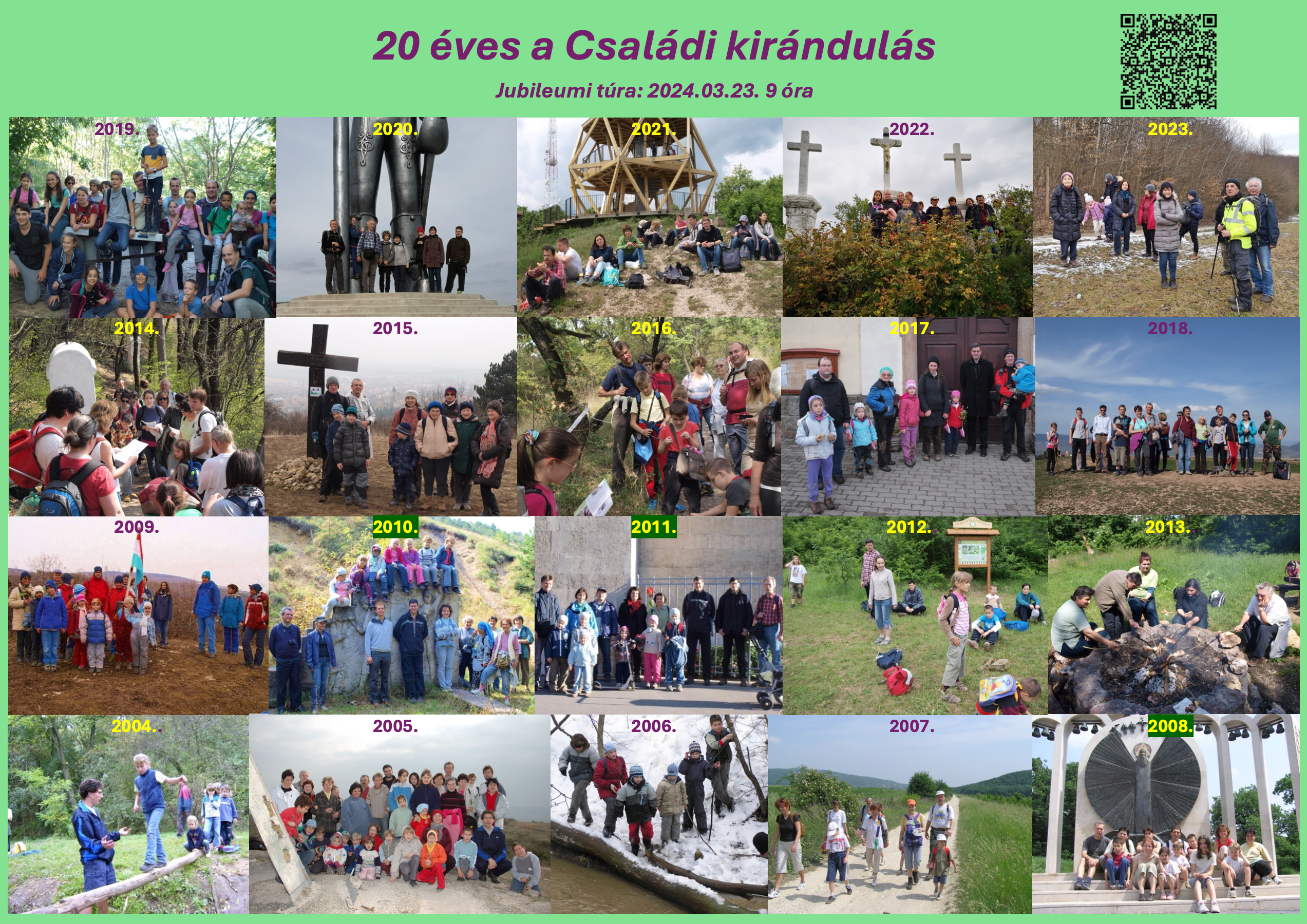A cél az volt, hogy a családok minden nemzedéke részt vehessen, és rendszeresen keressük föl közösen lakóhelyünk környékének kirándulóhelyeit. Az ekkor kialakult hagyomány most már 20 éves múltra tekint vissza.